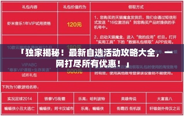 「独家揭秘!最新自选活动攻略大全,一网打尽所有优惠!」
