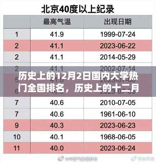 在历史的洪流中,每一个日期都承载着岁月的印记和时代的变迁,十二月二日,这一天在中国教育史上,见证了许多国内顶尖大学的崛起与变迁,让我们一同回溯时光,探寻这一天在中国大学排名史上的重要事件及其深远的影响。